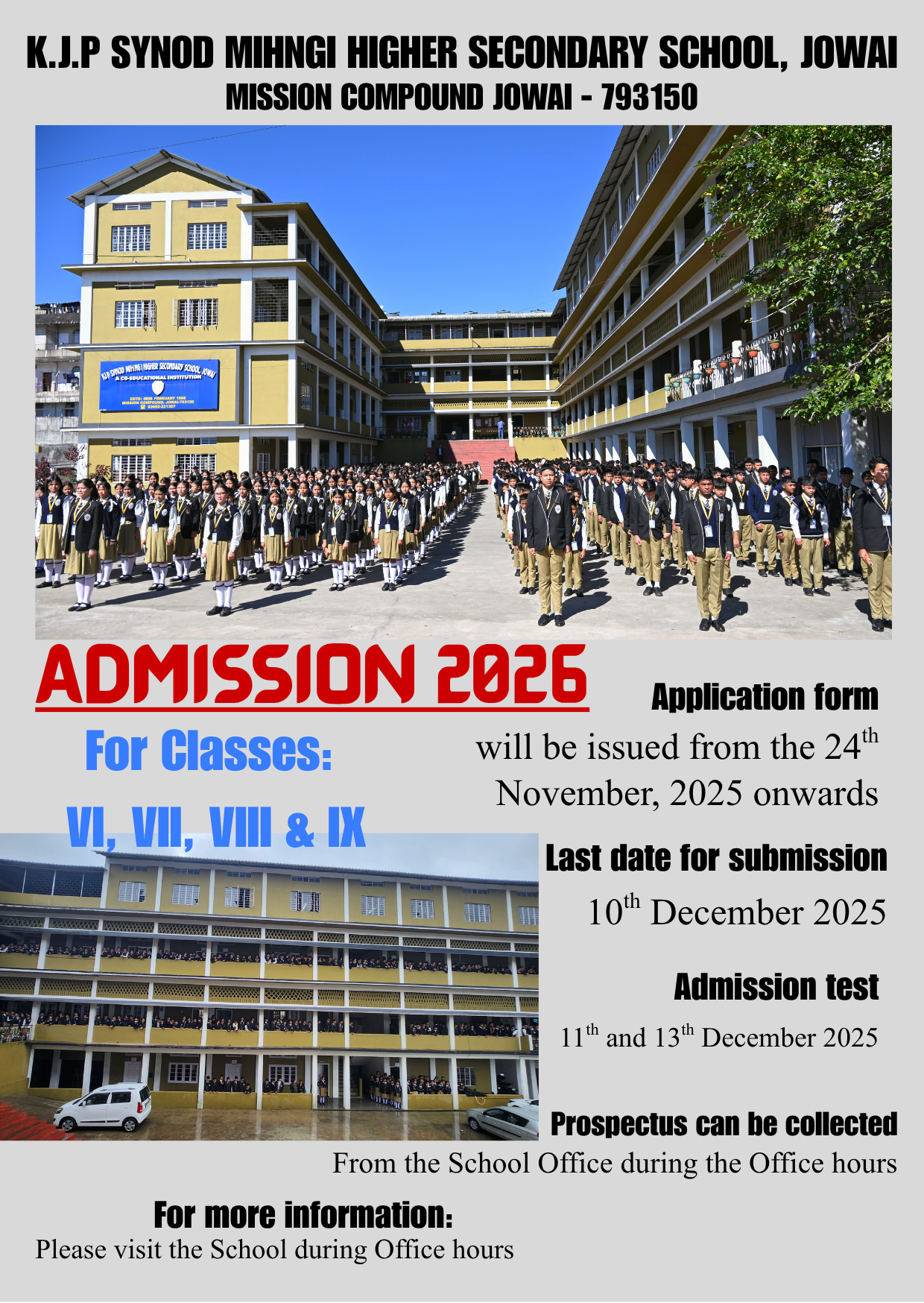 The KJP Synod Mihngi Higher Secondary School is committed to quality education for the holistic development of all students, culminating in attaining excellence in their lives, so that they will be a blessing to the society and the world at large.